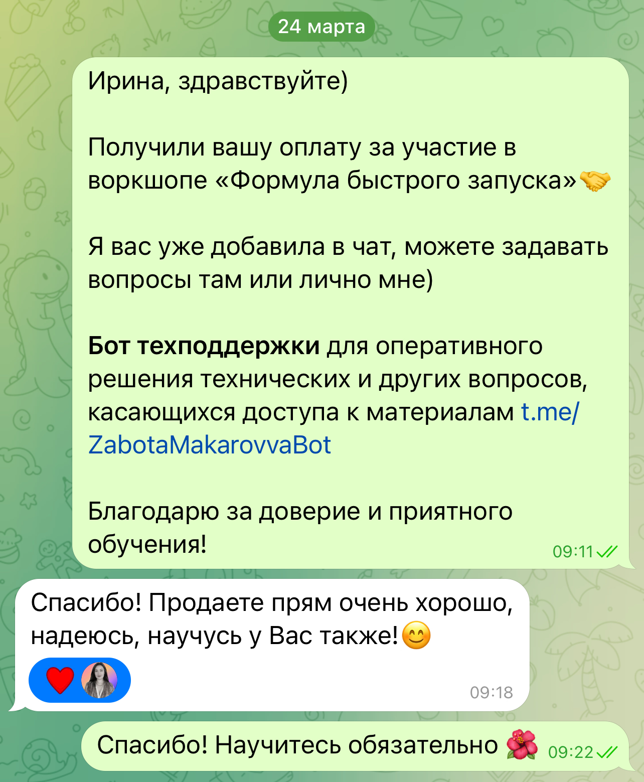 Как только технология прошла достаточную обкатку, я начала ей делиться и помогать другим с её помощью получать такие же стабильные и предсказуемые оплаты каждый день