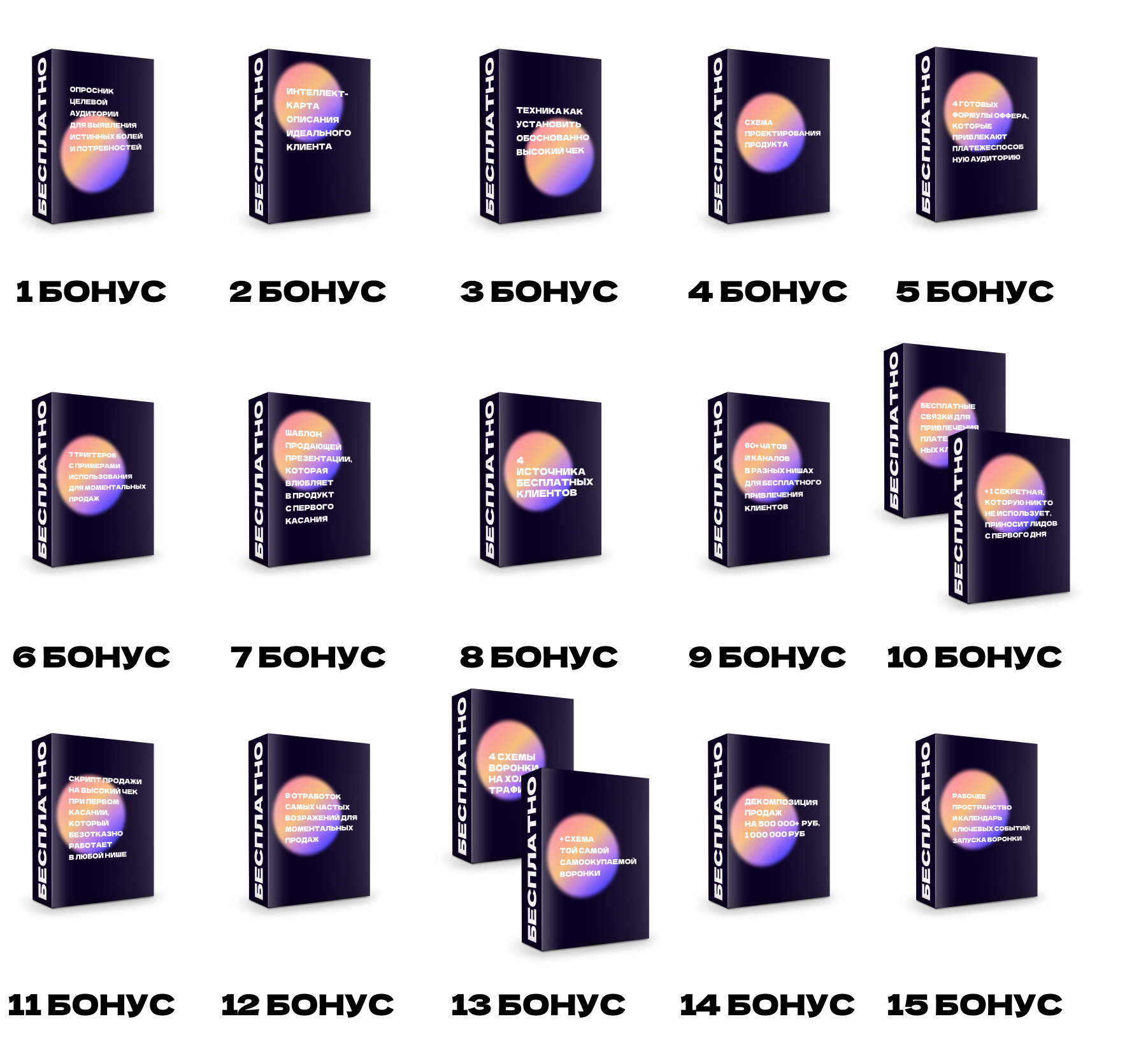 Все эти 15 бонусных материалов откроются тебе сразу после оплаты воркшопа “Формула быстрого запуска”
