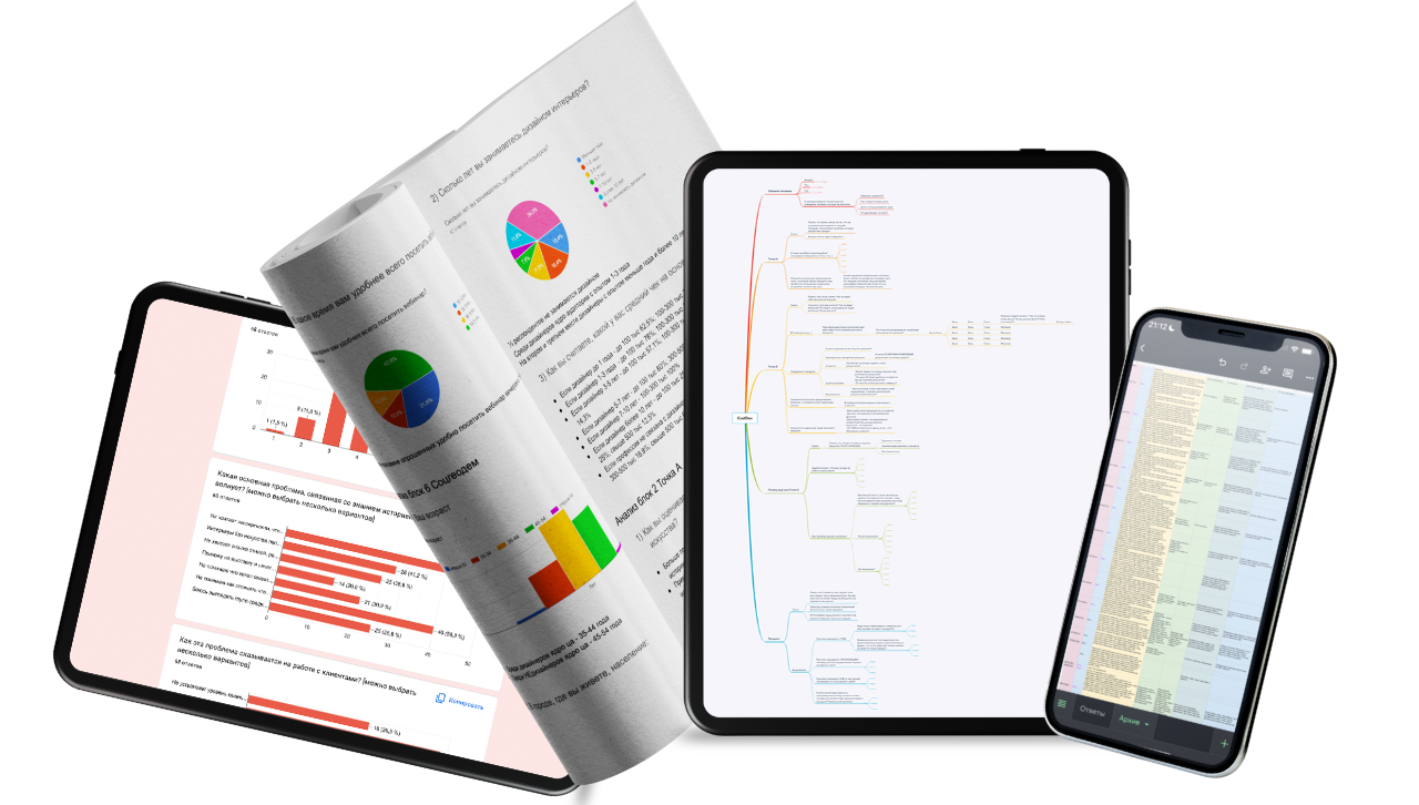 Благодаря использованию готовых продвинутых шаблонов анкеты и интеллект-карт для продуктового, маркетингового и других исследований вы сможете гораздо быстрее подготовиться к анализу целевой аудитории и оформить результаты по шаблону, который также входит в набор