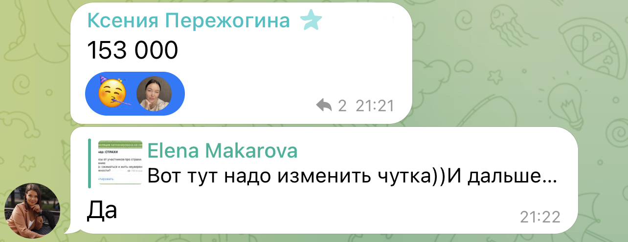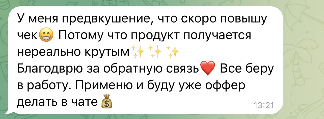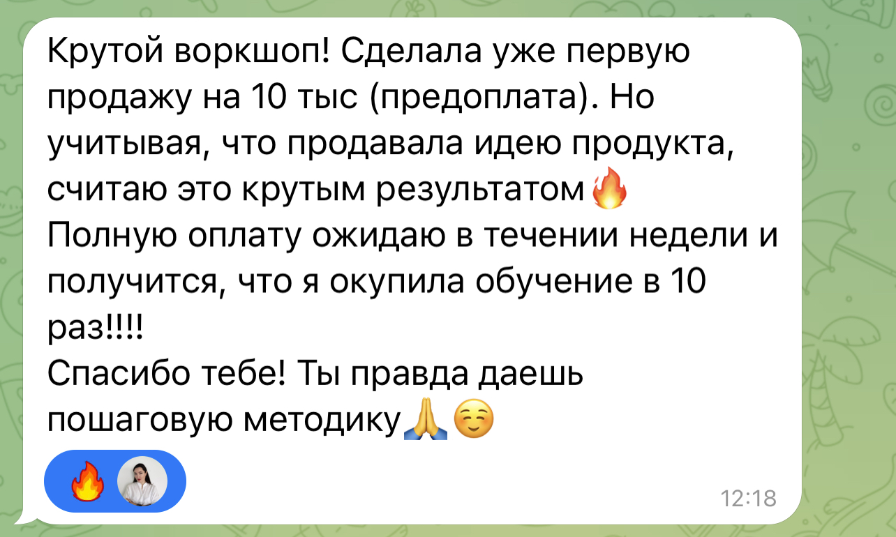 «Для меня очень полезно, все пошагово. По майнд карте легко действовать. Я ответила себе на вопросы: что я продаю, кто будет покупать, какой продукт хочет купить мой покупатель, как упаковать продукт»